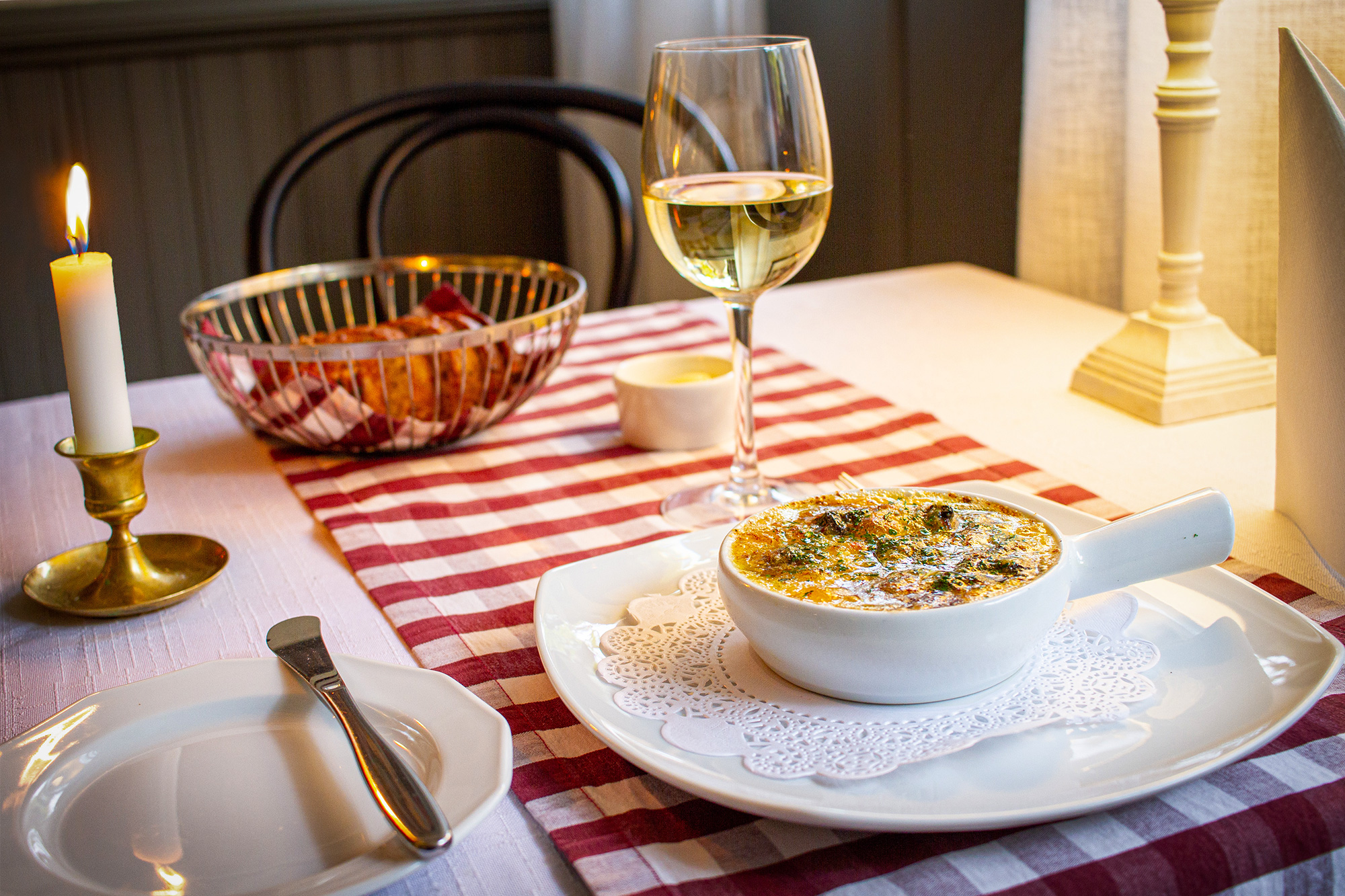 Tarjoamme ruoka-annostemme kanssa keittiössämme leivottua vaaleaa leipää.